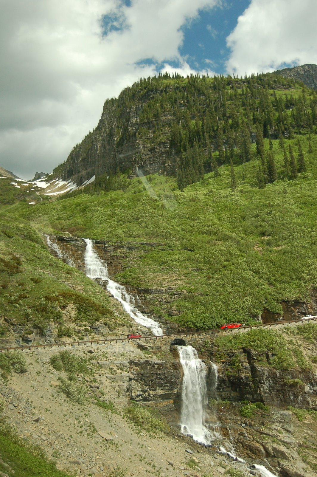 Hi everyone! We all had a day off together yesterday, and decided to “play tourist” as we call it when we do what everyone else in an area is doing. The major attraction in this part of the park is the “Going to the Sun Road”. It takes about three hours to drive/ride one way. We rode the free shuttles all the way from the East to the West side of the park and back again.