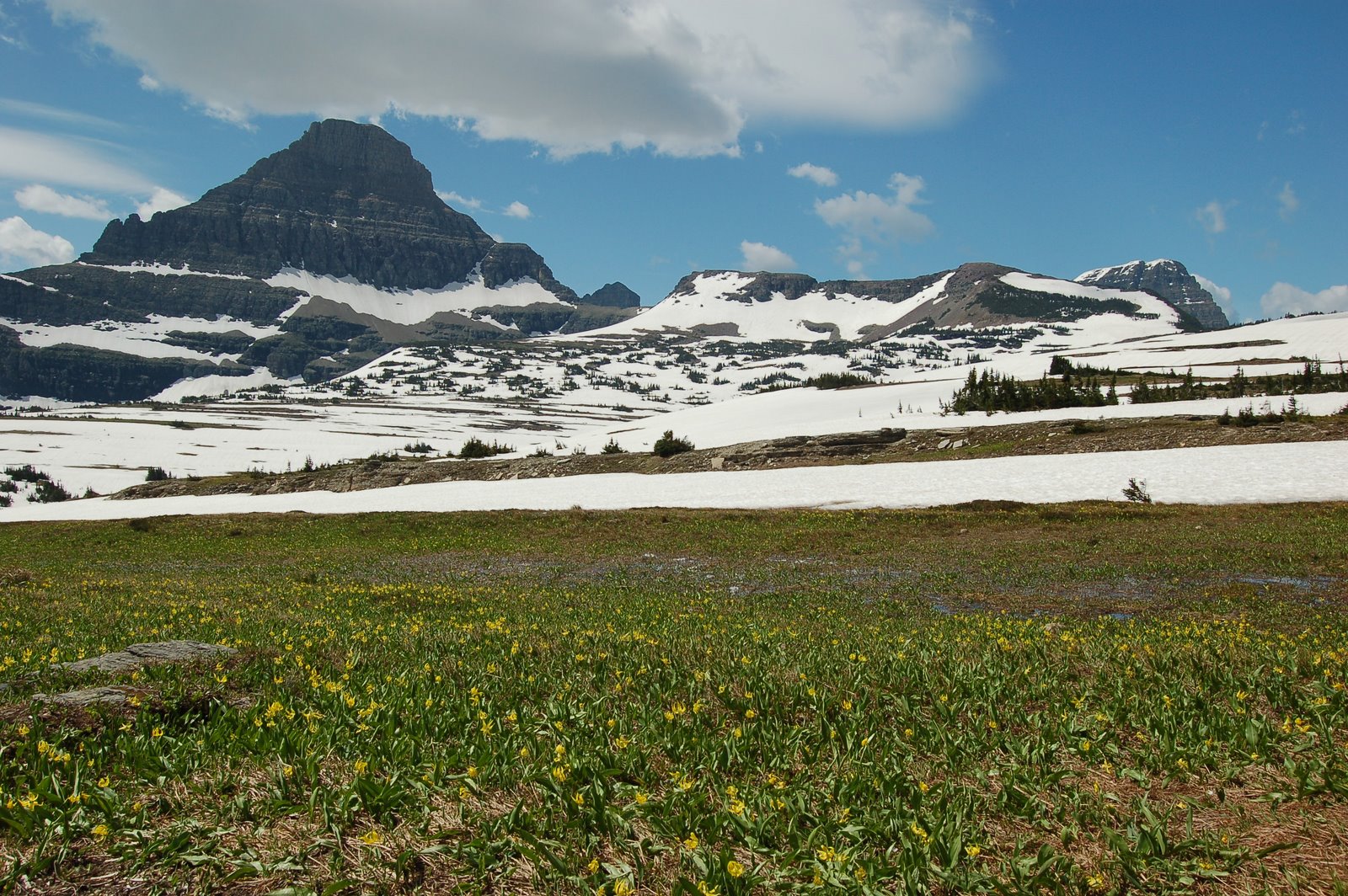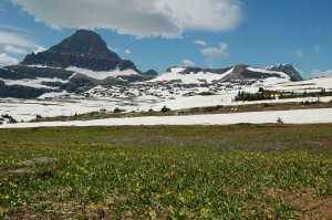 While there is still a lot of snow at Logan Pass, there are some beautiful yellow flowers that are blooming now as well.