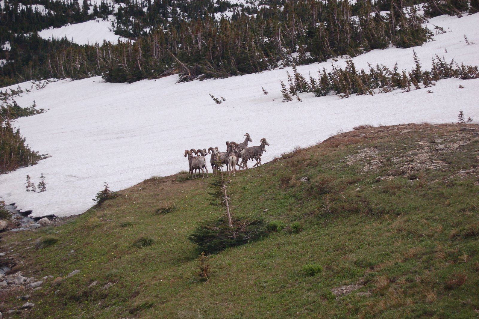 A small herd of bighorn sheep were playing just below Logan Pass.