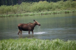 We hiked from Goat Haunt up to Kootenai Lake (5.6 miles round trip). We were treated to five moose feeding in the lake. There were 3 cow moose and 2 bulls.