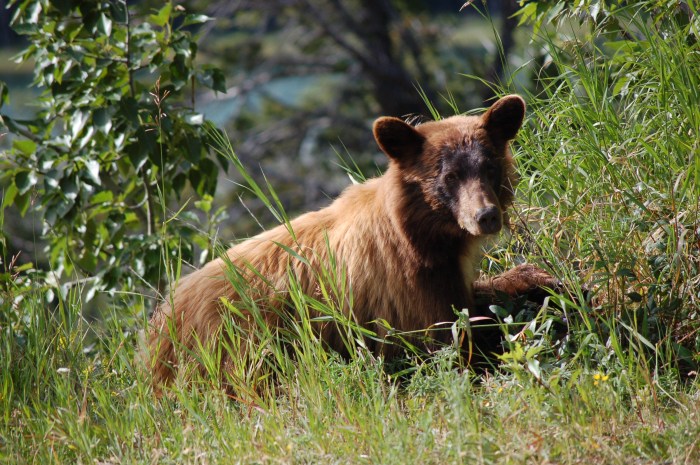 These two bears were hidden in the underbrush or wildflowers on the road into Many Glacier. We decided to take photos and not tag them or race them to the goal. 🙂 That way we all win the game.