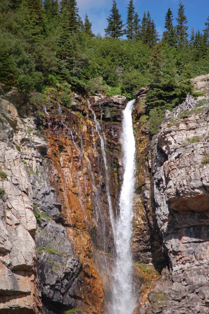 With that adventure behind us, we took on some hikes. We are still exploring some trails we have never been on in our attempt to build strength before tackling some tougher things. We tried a two trail day, with a short 2 mile round trip hike to Apikuni Falls and a 5 mile trip to Red Rock Falls on the Swiftcurrent Pass trail. It was a super day, as we got to test our climbing muscles on the way to Apikuni Falls, and we saw the two bear from above, and three moose.