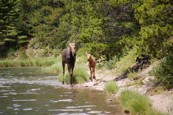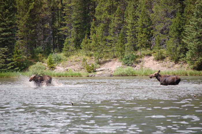 This is where we got to play another game of hide and seek. Except this time, we were hiding. One of the adult moose decided to exit the water and head toward the hiking trail. We (and several other hikers) left the trail and hid behind some trees waiting for the moose to decide where it wanted to go. We had no desire to be found! After a few minutes, we were able to backtrack to the lakeshore and then connect to another trail to rejoin our original hike. It was quite an adrenaline rush for a minute or two!