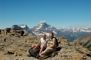 This hike is listed as a “backpackers must-do” hike in our book, and we had heard good things from our Glacier friends. They are all right! The trail is called the Pitamaken-Dawson Loop. It is 17.6 miles.(When we started the hike we thought that it was going to be just over 15, but we missed something when we were reading the description.) It starts at lake level, circles the back side of a mountain, travels past an alpine lake, climbs the side of a mountain, crosses a ridgeline, circles the back of another mountain, more ridge, around a third mountain, and then descends into a valley and back along the lake.