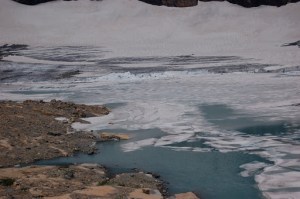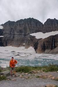 You can see the lake, the glacier to the left, and Salamander Glacier above. Glen says the salamander is peeing…..boys will be boys!