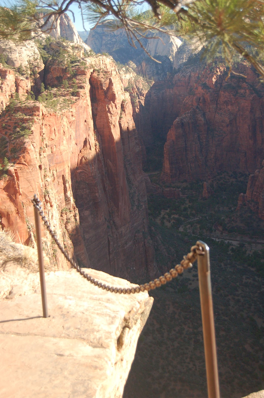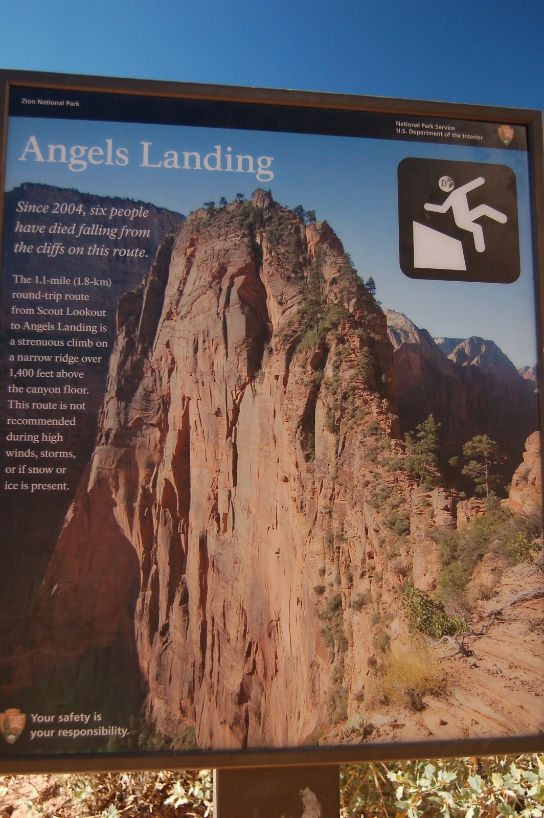 One of the most famous hikes in Zion is called the Angels Landing Trail. It climbs from the canyon floor to the rim and the last 3/4 of a mile is on a very narrow ridge trail. It has chains to hold so you supposedly won’t fall over 1400 feet to the canyon floor. (Although there have been 6 deaths here since 2004) There are warning signs everywhere telling you not to do this trail if it is windy, during thunderstorms, or if it is covered in snow and ice. (DUH!)