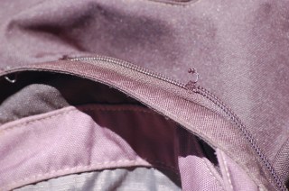 Remember the part about dropping Glen’s big pack at Scout’s Lookout before tackling the narrow part of the trail? Well, evidently squirrels like that tendency of hikers. While we were gone, a squirrel decided to eat his(or her) way into the pack in search of treats. In so doing, it chose to chew up the places where the zippers meet to keep the pockets closed. Some fellow hikers chased it away, but too late to save the pack. The peanut butter and jelly sandwich was fine, however. We ate, figured out a way to jury-rig the pack closed for the return hike, and cursed squirrels.