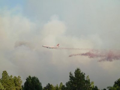 It is just one of many fires in the west this summer as everything is incredibly dry. The local fireworks for the 4th were cancelled. The fire fighters are working hard, and if we are lucky we may get a bit of rain this week. At the moment, the fire is 90% contained. We didn’t take this photo, but it is the fire and a plane dropping fire retardant on it.